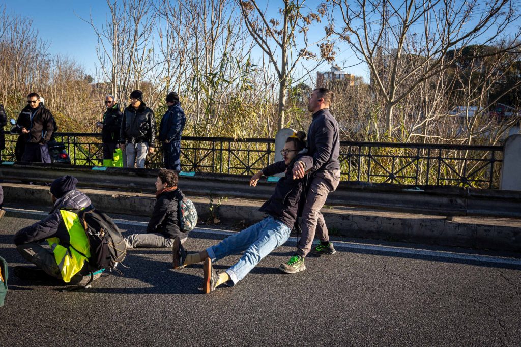 Oggi 13 cittadini aderenti alla campagna FONDO RIPARAZIONE, promossa da Ultima Generazione, hanno effettuato l’azione di disobbedienza civile a Roma alle 9.15, lungo via Salaria, direzione centro all’imbocco con via Prati Fiscali. L’azione si è svolta mostrando i simboli ed i colori della GKN di Firenze. Le persone hanno srotolato striscioni con scritto: “#Insorgiamo con i lavoratori di GKN” e “Teniamoci le mani verso l’ora X”. Alle ore 9.35 sono arrivate le forze dell’ordine.