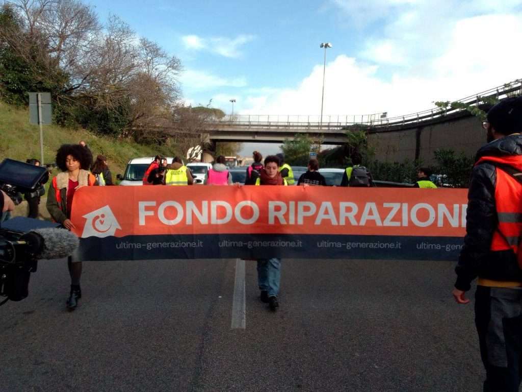 Oggi 15 cittadini aderenti alla campagna FONDO RIPARAZIONE, promossa da Ultima Generazione, hanno effettuato l’azione di disobbedienza civile a Roma alle 9.10, lungo via Nuova Flaminia, all’altezza di Saxa Rubra. Manifestare pacificamente è un diritto sancito dalla nostra Costituzione, ed oggi abbiamo dimostrato che tutti i cittadini hanno il potere di farlo. L’azione, battezzata come “Marcia lenta”, consiste nel camminare lentamente insieme per permettere a cittadini comuni a riprendersi la strada come spazio politico piuttosto che esclusivamente ad uso automobilistico. Le persone hanno srotolato uno striscione con scritto “Fondo Riparazione” e mostrato cartelli con scritto “Lenti come il governo”, “Suona il clacson se vuoi un Fondo Riparazione”, “Piano piano cambiamo”, “A passo di Papa”. La marcia lenta si è protratta fino all’altezza dell’uscita di Via Grottarossa, ed è durata 50 minuti prima che intervenissero le forze dell’ordine e portassero le 15 persone in commissariato.