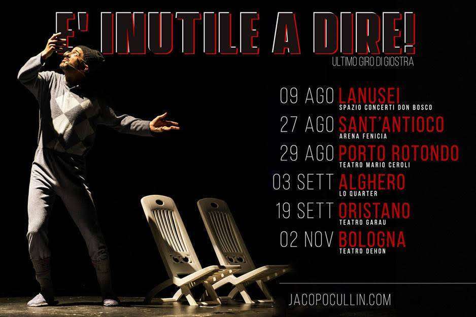 Dopo anni di tournée di successo, Jacopo Cullin annuncia il suo “Ultimo giro di giostra”, ovvero le ultime date dello spettacolo “È inutile a dire!”, autentico cult della comicità sarda e italiana.