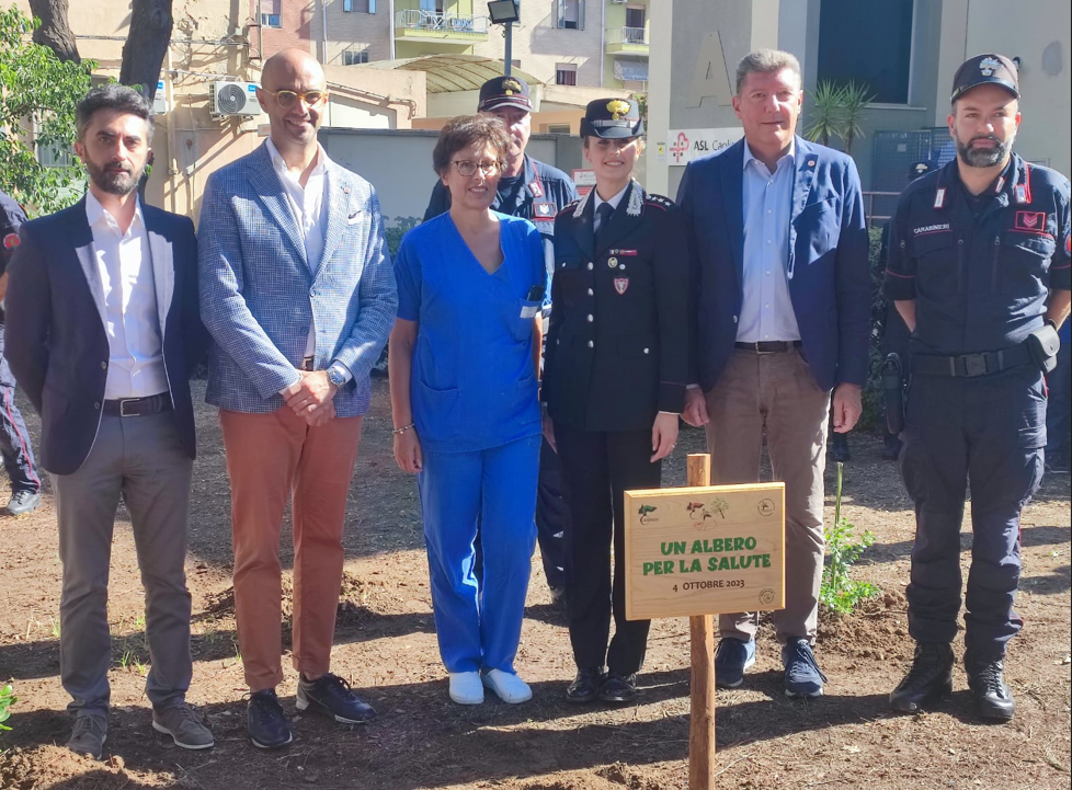 La cerimonia di donazione si è tenuta alla presenza della Direzione della ASL di Cagliari, della Direzione di presidio le della SC Medicina Interna, e dei Carabinieri del Raggruppamento Biodiversità. “Questo progetto nasce dalla sinergia tra diverse istituzioni e la FADOI – spiega Marta Simonetti Ufficiale reparto Biodiversità Carabinieri di Siena -. L’approccio è quello On Health perché tutti noi dobbiamo impegnarci per preservare l’ambiente esterno e quindi anche la nostra salute. Abbiamo messo oggi a dimora delle piantine di macchia mediterranea che andranno ad abbellire questo giardino. Ma non sarà solo un fatto estetico: tutte e tre saranno geolocalizzate e si potrà seguire la loro crescita e l’assorbimento di anidride carbonica sul sito Home – Raggruppamento Carabinieri Biodiversità (www. rgpbio.it)”.