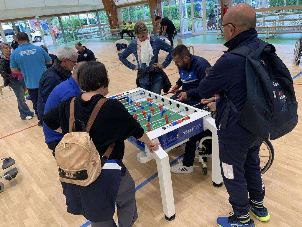 La polisportiva paralimpica cagliaritana Sardegna Sport (Sa.Spo.) si presenta con discreto allenamento in corpo ma anche tanta allegria al Villaggio Marzotto di Jesolo che ha concesso il suo spazio per la disputa del quarto Campionato Italiano a Squadre 2024, organizzato dalla FPICB (Federazione Paralimpica Italiana Calcio Balilla). Il quinto posto finale ne è una sorprendente conseguenza e solo per un soffio è stata smarrita la strada verso le semifinali. I progressi sono tangibili pensando anche alla scorsa edizione dove i ragazzi seguiti dal tecnico accompagnatore Claudio Secci erano stati estromessi agli ottavi di finale. Le coppie sarde schierate nella nota località adriatica erano due: la prima composta da Annibale Pireddu e Giovanni Ambus e l’altra da Giuseppe Murru e Gianfranco Peddis più la riserva Silvio Faedda.