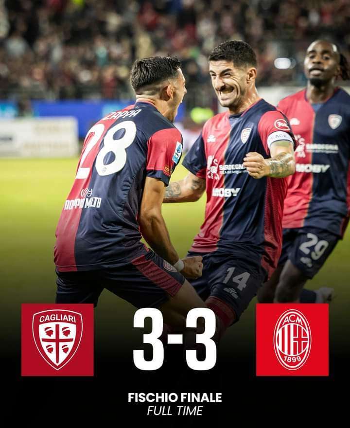 Zappa è anche uno degli autori dei gol annullati: rete azzerata da un tocco di suola di Viola in fuorigioco. Altrimenti sarebbe stata tripletta. Un pari che frena l’entusiasmo in casa Milan. E che regala al Cagliari lo stop alla serie negativa di 3 sconfitte di fila. Molti gol, ma difese da rivedere. Il Milan soprattutto deve fare mea culpa per il secondo gol: un doppio svarione di Fofana che ha lanciato Zappa su Maignan. Ma anche lasciar tirare gli esterni – il primo avviso era stato il gol dopo due minuti di Zortea – è stato sicuramente un grave errore.