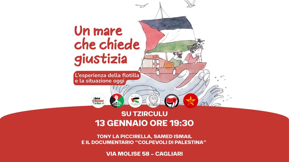 Martedì 13 gennaio a Su Tzirculu a partire dalle ore 19.30 è stato organizzato l’evento: ” Un mare che chiede giustizia L’esperienza della Flottilla e la situazione oggi”.