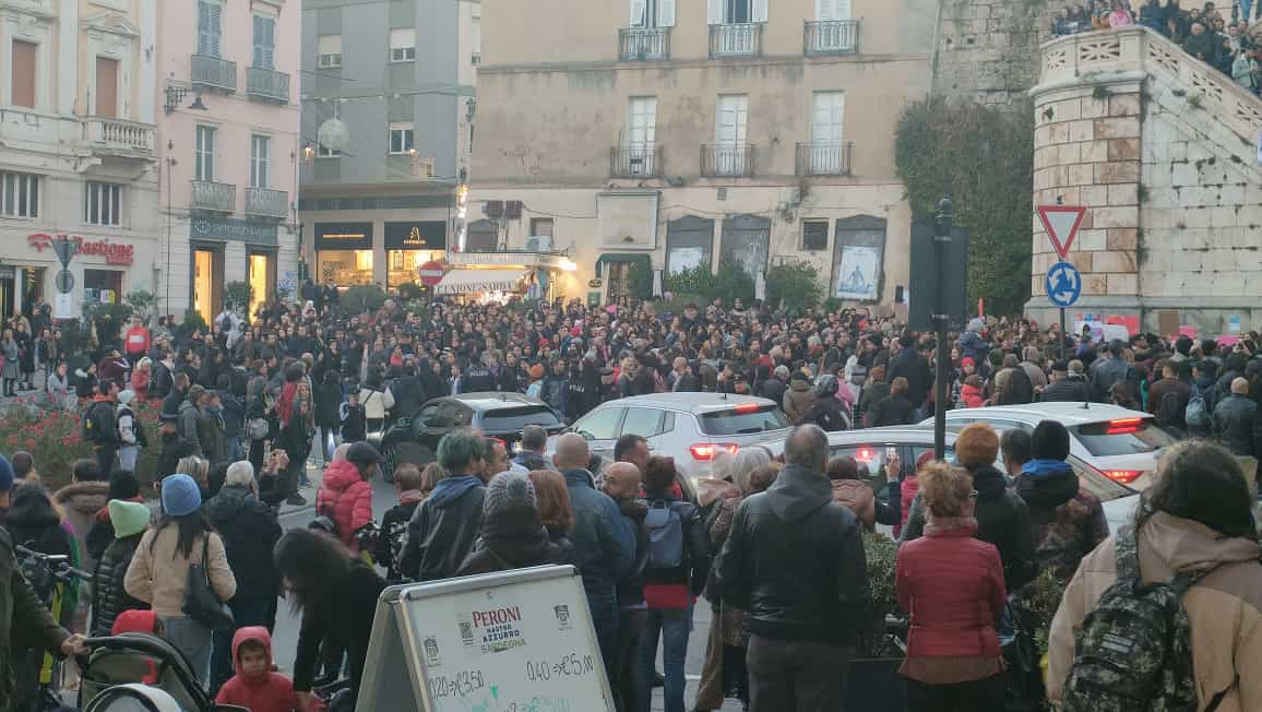 Di fronte, sulle scalinate del Bastione di Saint Remy, grande partecipazione per un’altra manifestazione che ha colorato di fucsia il monumento con striscioni e scritte come: “Non ci scusiamo per il disturbo, ci stanno ammazzando” e “Basta violenza sui nostri corpi”. Un presidio transfemminista indetto da Non Una Di Meno “contro la violenza patriarcale”. “Il 25 novembre in piazza a Cagliari – si legge nel manifesto dell’iniziativa per ribadire che siamo arrabbiate e vogliamo una trasformazione radicale della società, consapevoli che non saranno pene più severe, militarizzazione e sicurezza ad azzerare la violenza”.