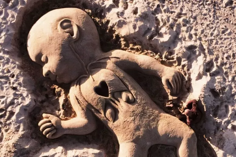 Un’opera di quasi 5 metri sulla spiaggia di Platamona sul dramma del bimbo morto sabato e a cui due mesi fa è stato trapiantato un cuore danneggiato.