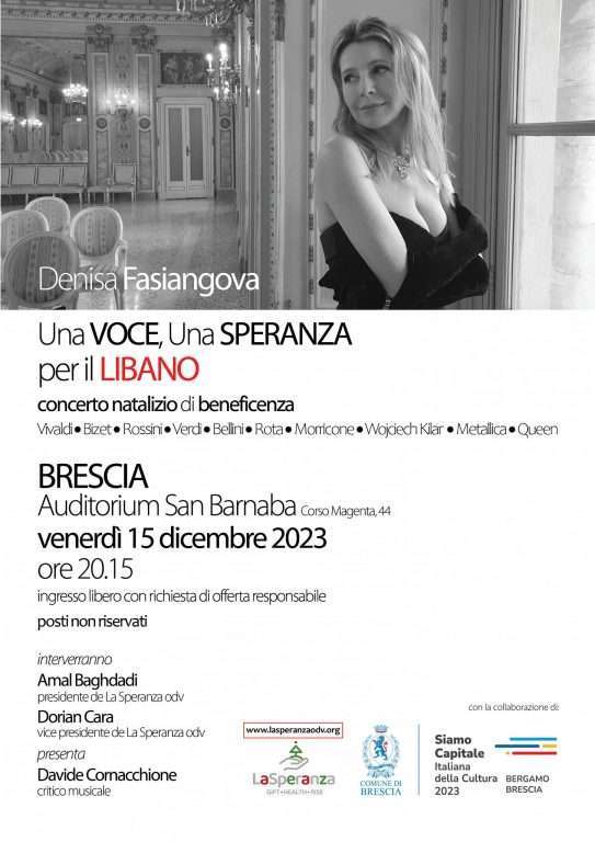 Una Voce, Una Speranza per il Libano. Concerto natalizio di beneficenza con il soprano Denisa Fasiangova