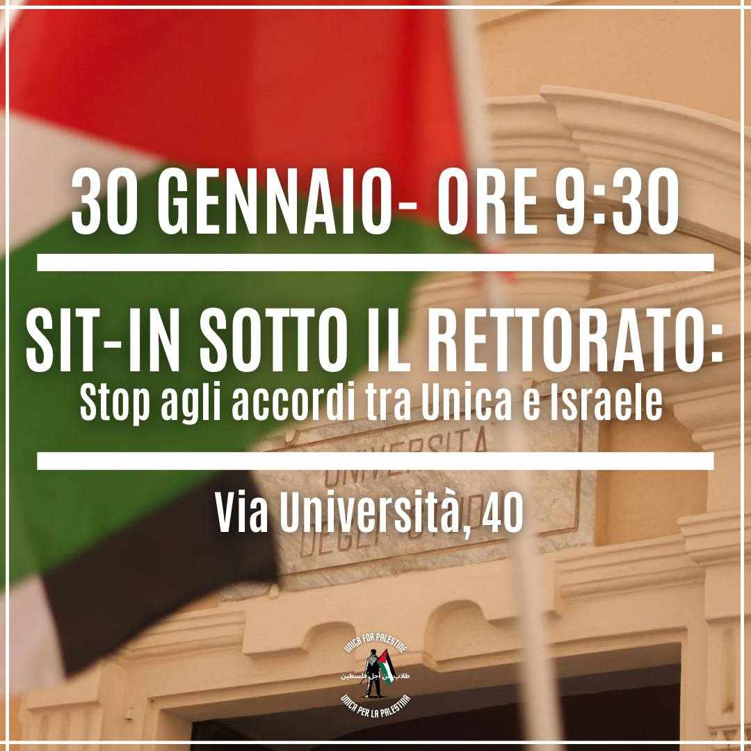Il 30 gennaio al Senato Accademico verrà discussa la mozione in cui chiediamo l’interruzione degli accordi accademici tra l’Università di Cagliari e l’Università di Haifa, nonché lo stop a qualsiasi nuovo accordo con ogni università complice del massacro.