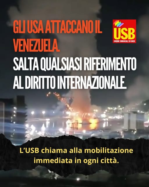 “Gli Usa attaccano il Venezuela. Salta qualsiasi riferimento al diritto internazionale, l’imperialismo ha scelto la violenza come unica forma di dominio sui popoli. L’USB chiama alla mobilitazione immediata in ogni città.