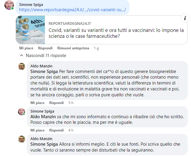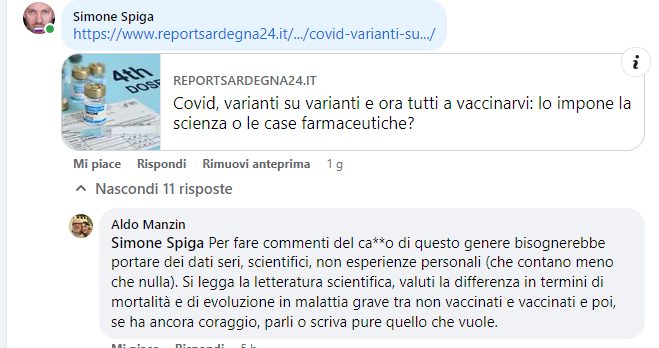 Quando la scienzah si arroga il diritto all’unica verità, scade nella maleducazione. Questo è successo oggi in una pagina Facebook, dove un’opinione del Direttore di ReportSardegna24, Simone Spiga, è diventato argomento per una sequela di insulti e di “superiorità” scientifica.