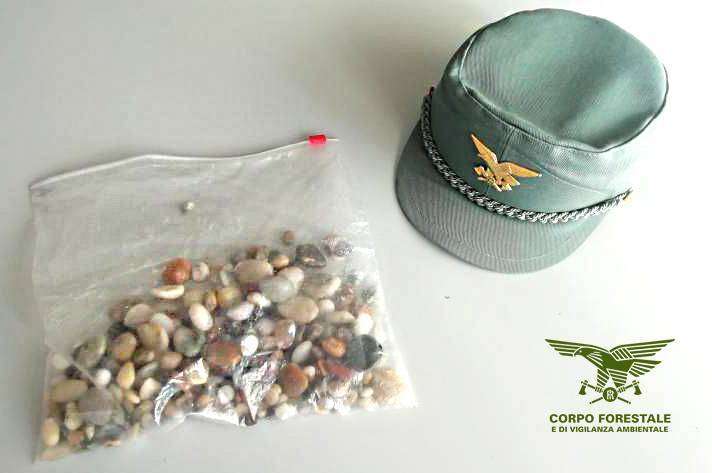 Giunti sul posto gli agenti constatavano che un turista, un cinquantenne italiano accompagnato da moglie e figli, aveva raccolto e riposto con cura in una borsa un sacchetto richiudibile per alimenti contenente circa 1 kg di ciottoli di quarzo.
