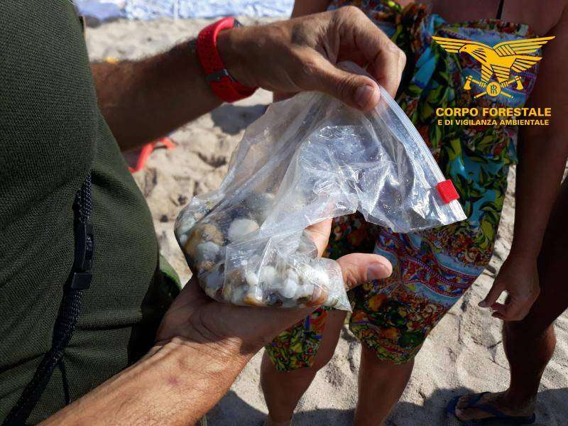 Alla contestazione degli agenti accertanti il bagnante si giustificava affermando che la raccolta avveniva per far giocare i bambini.