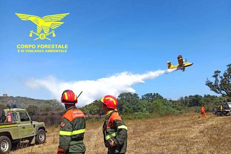 Presenti i mezzi a terra dei Vigili del Fuoco, barracelli, protezione civile e corpo forestale.