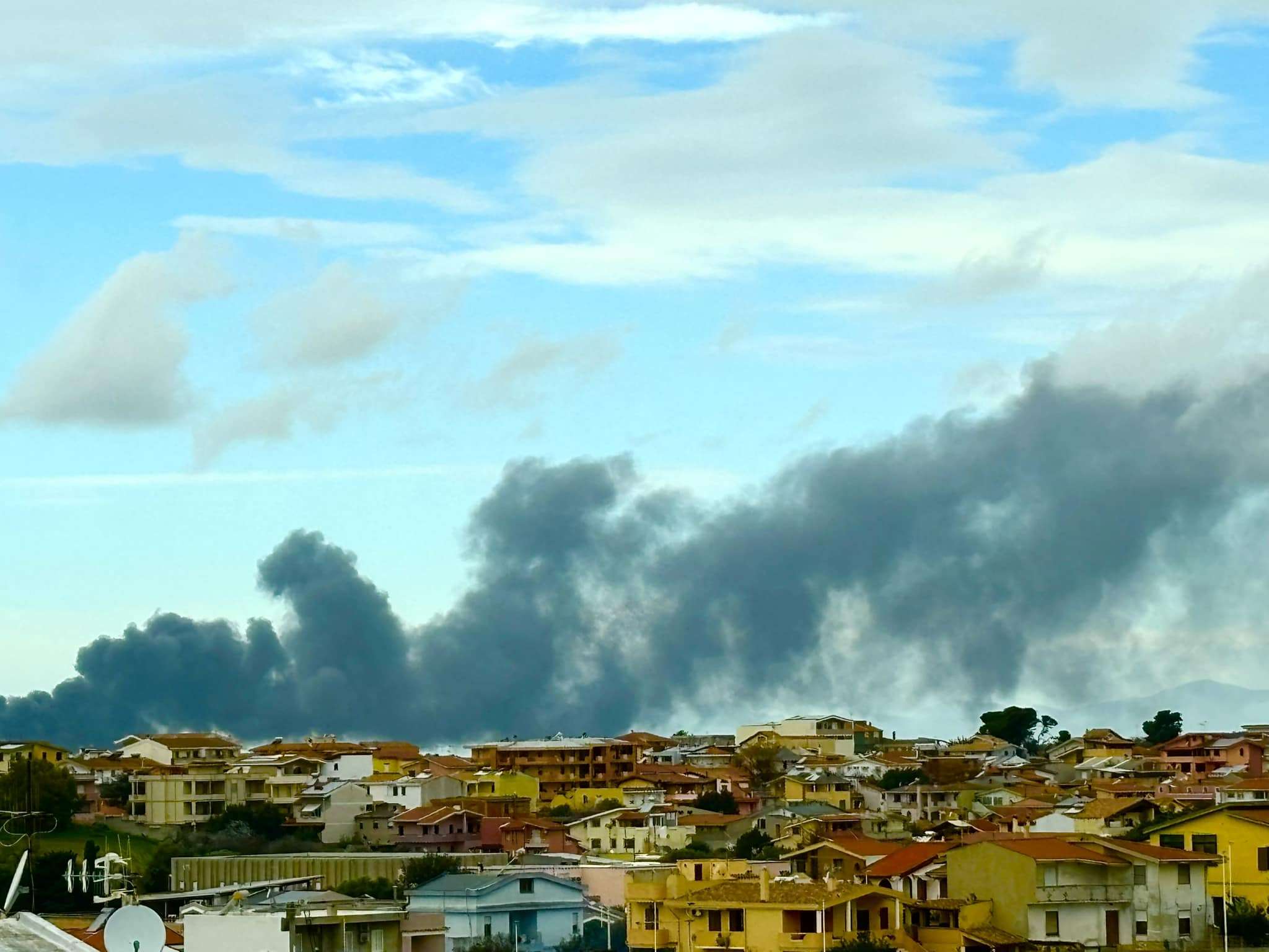 Un vasto incendio è divampato questo pomeriggio in una discarica di pneumatici sulla statale 387, nel Comune di Selargius.
