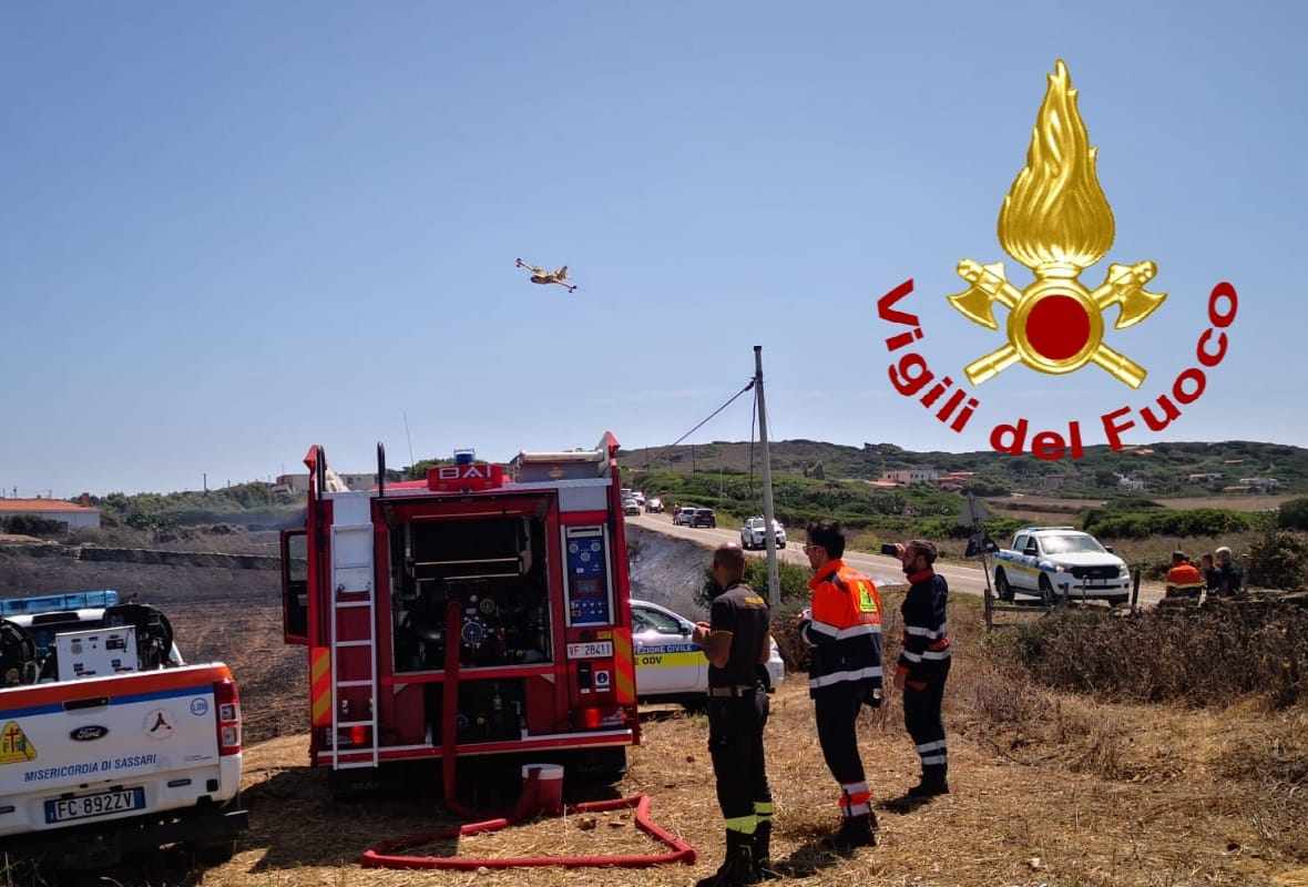 Sul posto, la squadra dei Vigili del Fuoco di Sassari per lo spegnimento della fiamme, insieme alla Forestale, baracelli, mezzi aerei di cui un elicottero della regione e due canadair.