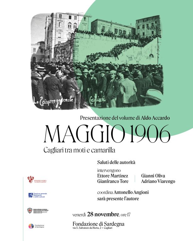 Venerdì 28 novembre alle 17 a Cagliari, la sede della Fondazione di Sardegna -in via San Salvatore da Horta 2- ospita la presentazione del volume dello storico Aldo Accardo ‘Maggio 1906. Cagliari tra moti e camarilla’ pubblicato da Gaspari editore.
