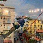 L’esposizione sul calcio e l’evoluzione stilistica delle sue divise, mi pare coerente con una città dall’anima popolare, dove è stato abbattuto il muro tra folk e arte elitaria, fuori dal Maschio Angioino, una maglietta del Napoli indosso a un palleggiatore con la parrucca che imita Maradona, vale quanto una scultura di William Kentridge sullo sfondo (“il cavaliere di Toledo” del 2012), mentre s’esibisce e viene filmato.