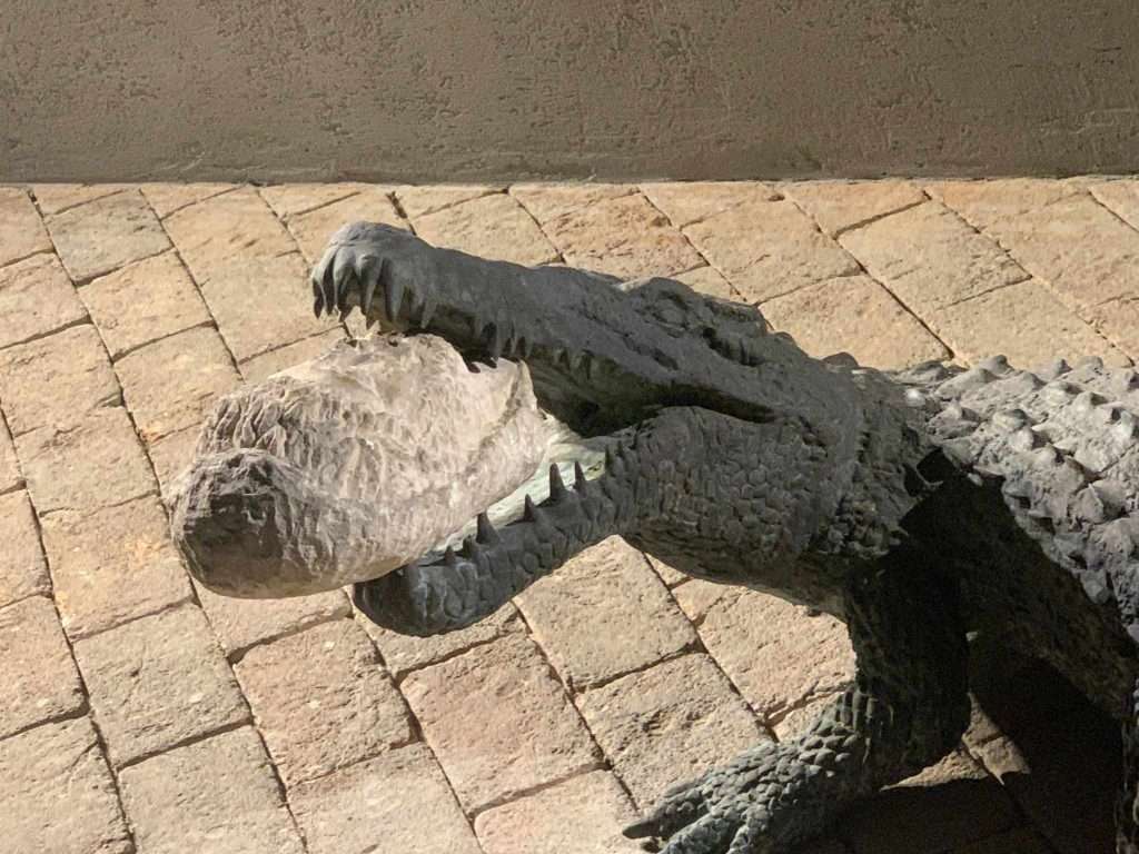 Il coccodrillo trasportato dall’Egitto, nei sotterranei del castello, sbranava gli amanti della regina, e i prigionieri rinchiusi.