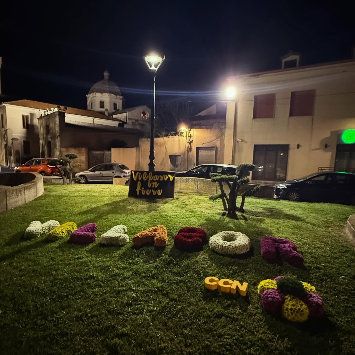La scritta Villasor realizzata coi fiori e il nuovo Albero della Vita davanti al Municipio inaugurano ufficialmente l’edizione di quest’anno.