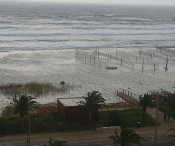 Intorno alle 12 le prime onde hanno iniziato a sommergere tutto e la sabbia è velocemente scomparso, le onde arrivano sino alla strada e non lasciano scampo nemmeno agli stabilimenti balneari.