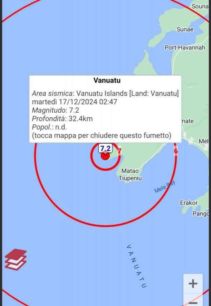Poche ore fa un terremoto di magnitudo 7.2 [ipocentro a 57 km di profondità secondo l’USGS] ha colpito Port Vila, la capitale di Vanuatu.