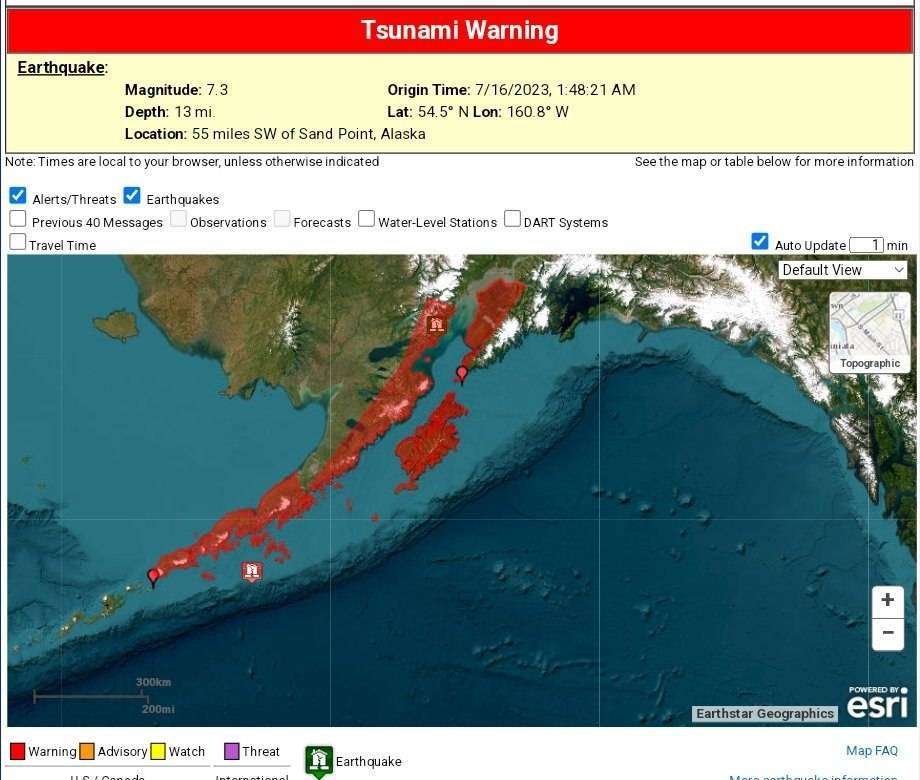 Ipocentro a 20 km di profondità, è stata immediatamente diramata l’allerta tsunami nel sud dell’Alaska.
