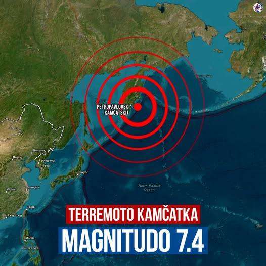 Un violento terremoto di M 7.4 è avvenuto alle 08:49 italiane al largo della penisola di Kamčatka, in Russia. La scossa è stata localizzata 140 km ad est di Petropavlovsk-Kamčatskij, capoluogo del territorio, ad una profondità di soli 20 km.