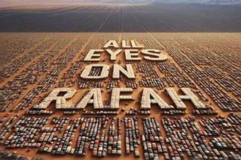 Al centro, strutture bianche che compongono le parole “All eyes on Rafah”, tutti gli occhi su Rafah. L’immagine – che si ritiene sia stata generata con l’Ia – ha fatto il record di condivisioni su Instagram, dove oltre 44 milioni di persone l’hanno aggiunta alle loro storie. Una forma di attivismo social che giunge all’indomani della strage provocata domenica sera da un attacco israeliano in un campo di tende nel territorio a sud della Striscia.