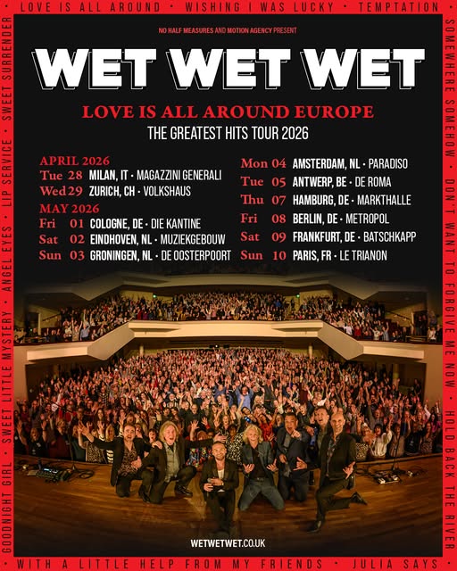 I Wet Wet Wet tornano in tour in Europa e scelgono Milano per l’unica data italiana del loro tour: appuntamento martedì 28 aprile 2026 ai Magazzini Generali. I biglietti saranno in vendita su Ticketone dalle 10 di venerdì 26 settembre 2025.