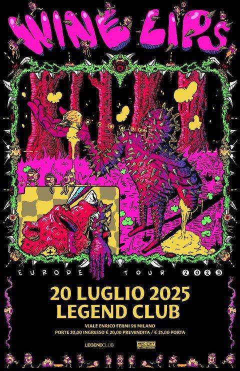 Direttamente dal Canada, il tornado sonoro dei Wine Lips arriva a Milano per una serata di pura adrenalina! Dopo aver conquistato il pubblico internazionale con tour infiniti e album che hanno spopolato sulle piattaforme di streaming, la band porta sul palco del Legend Club il loro ultimo capolavoro: Super Mega Ultra (2024 – Stomp Records).