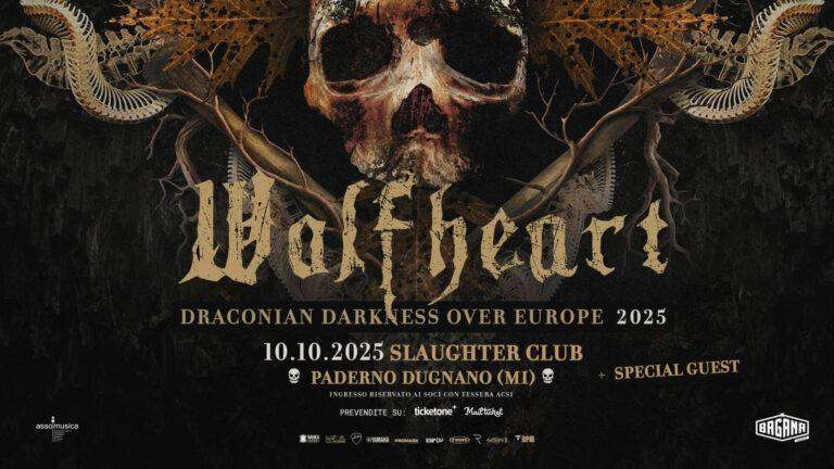 I Wolfheart, tra le formazioni più imponenti e suggestive della scena melodic death metal, tornano in Italia per un’unica e imperdibile data con il loro tour europeo “Draconian Darkness Over Europe 2025”. L’appuntamento è fissato per venerdì 10 ottobre 2025 presso lo Slaughter Club di Paderno Dugnano (MI), in una serata che si preannuncia un’esplosione di potenza e atmosfera, affiancata da special guest d’eccezione che verranno annunciati a breve.
